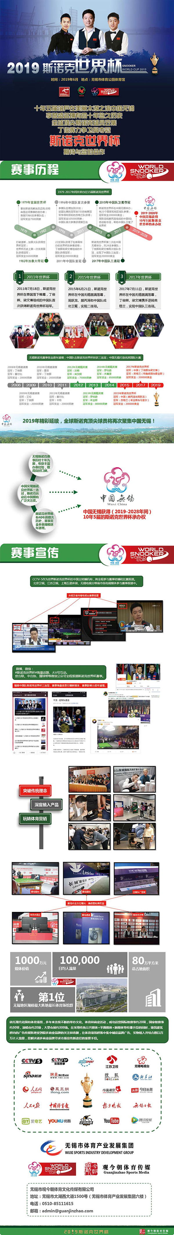 2008-2017年,中国无锡打造了9届国际顶级斯诺克赛,赛事品牌校园凸显。此后中国无锡再次获得斯诺克世界杯10年5届的承办权。2019年斯诺克世界杯将于6月24日—30日在无锡体育公园斯诺克馆举行。